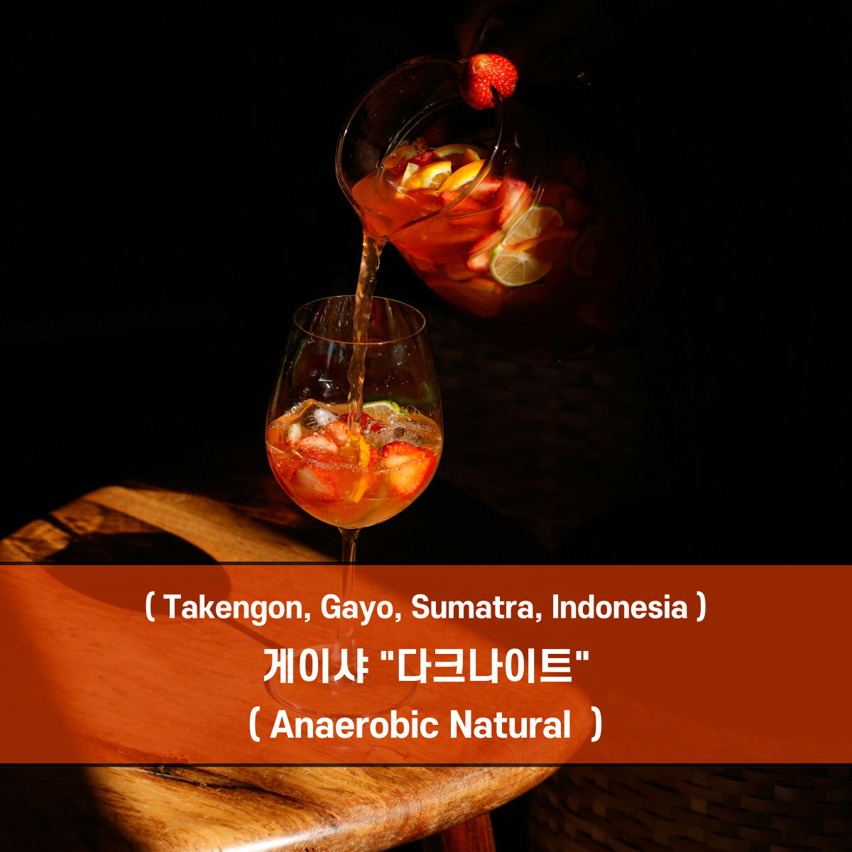 커피 프로듀서 Cek Lem과 그의 동료 Andri와 Ari가 최고 품질의 게이샤 커피체리를 생산 및 구매후 최상의 가공을 통해 생산한 "다크나이트"