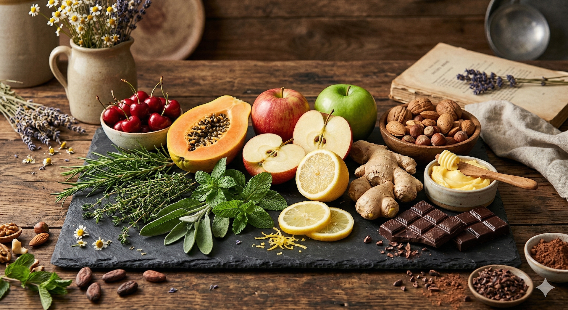 노트 Herbal, Fruity, ginger, nut, lemon, cherry, apple, papaya, chocolate, butter