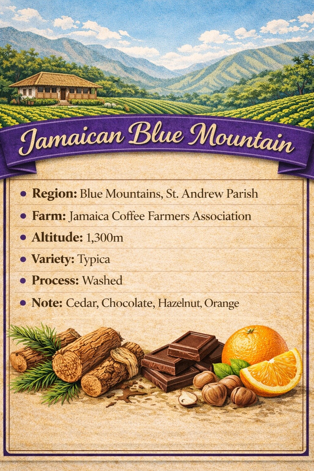 자메이카 블루마운틴에서 250명의 작은 커피농장을 소유하고 농부들의 조합 "Jamaica Coffee Farmers Association"에서 생산된 커피입니다. 고급 클래식 커피의 대명사 자메이카 블루마운틴