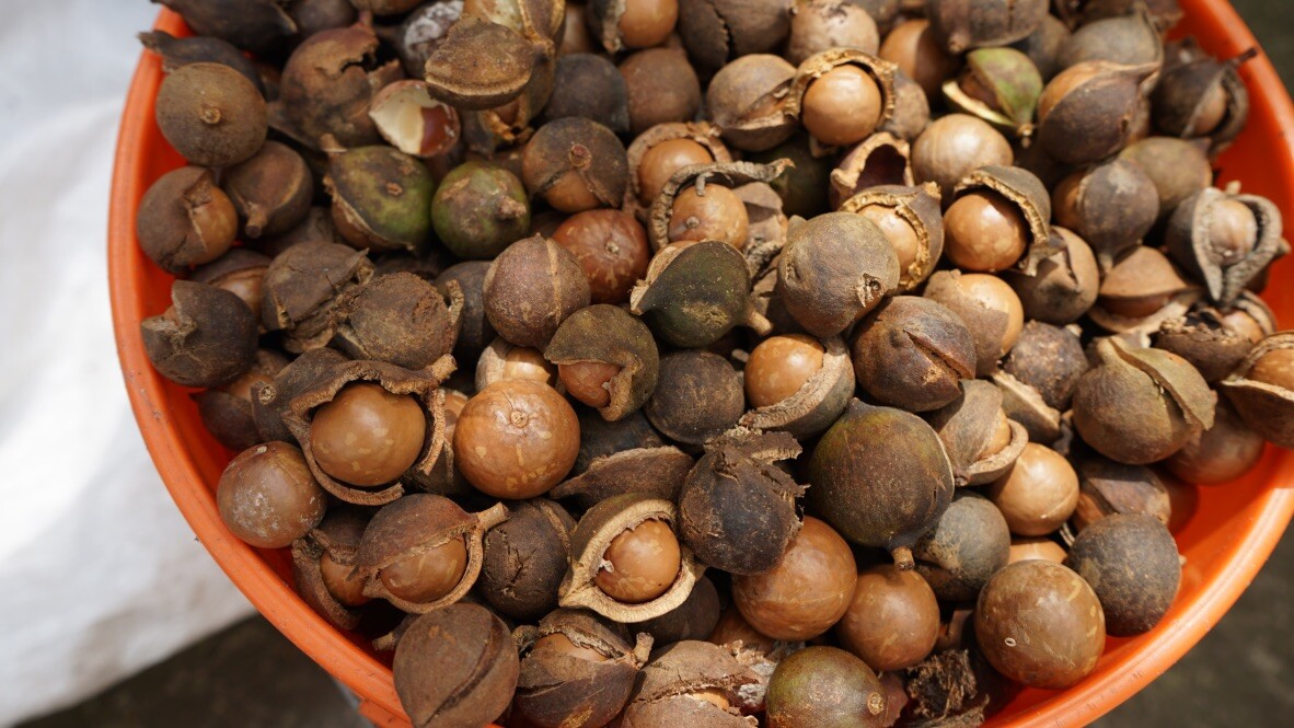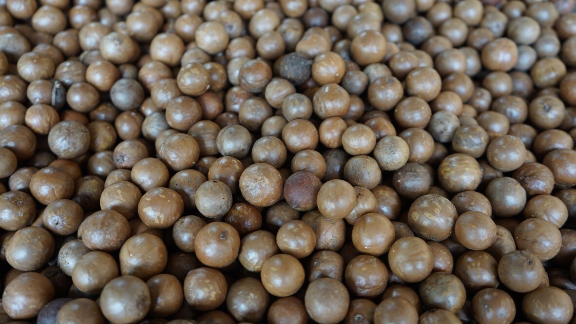 핸드픽으로 정성스럽게 수확한 마카다미아는 첫번째 껍질을 제거해야 합니다