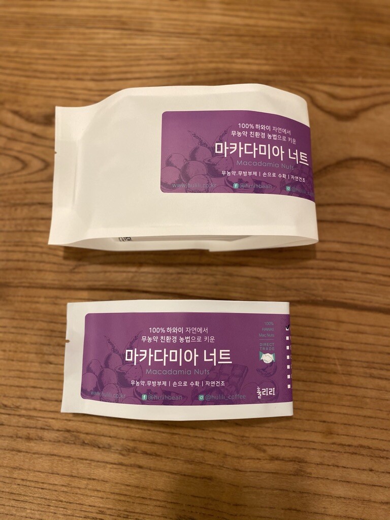 하와이 빅아일랜드 '카우 지역'에서 무농약, 핸드픽으로 수확 후 로스팅하지 않고 건조 가공한 최고 품질의 마카다미아 너트를 100% 항공으로 수입 판매하고 있는 제품입니다