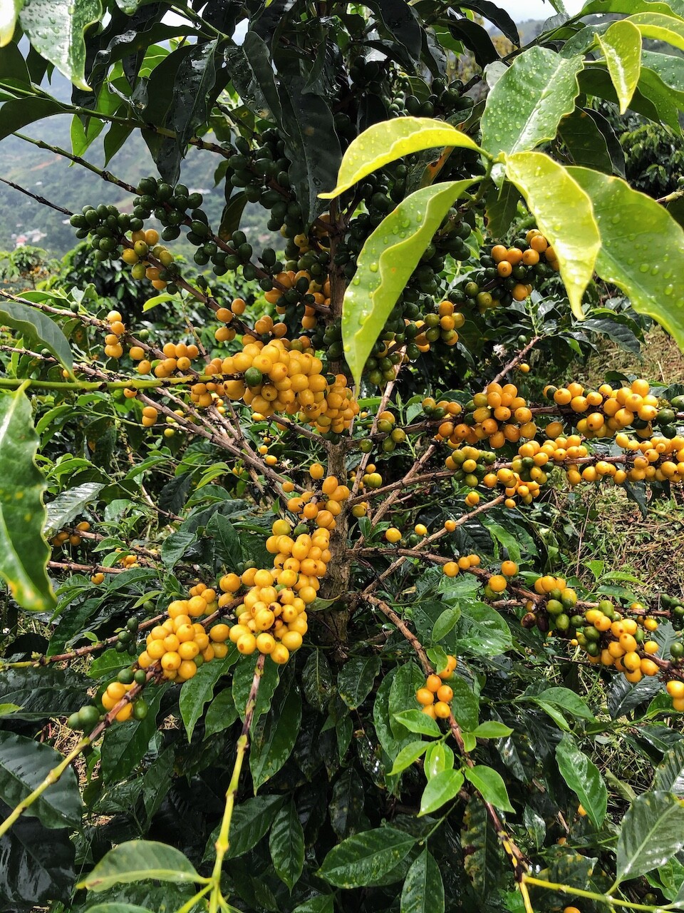 1. 수확: 잘 익은 커피 체리를 선별하여 수확합니다.