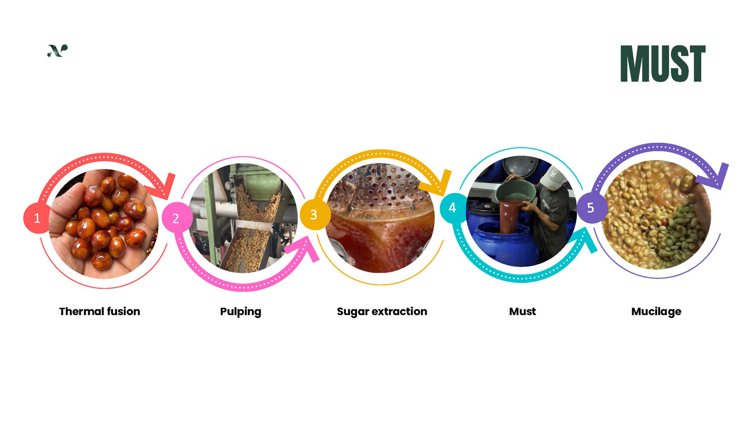 동일한 커피의 과육이나 껍질에서 효소 및 발효 과정을 통해 얻은 천연 용매를 첨가합니다.