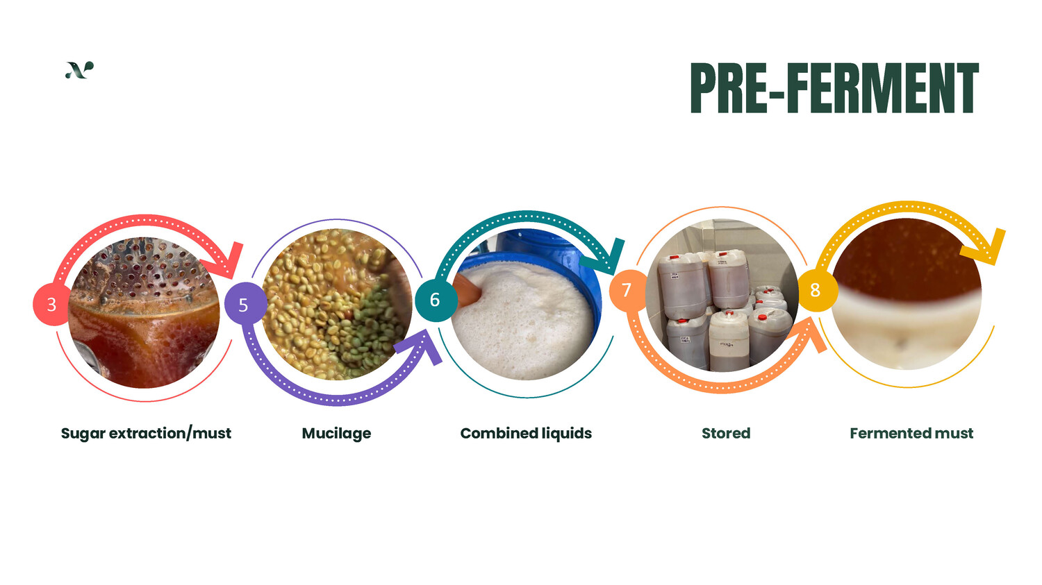 선별된 원두는 제빵에서 사용되는 천연 발효종(사워도우)과 유사한 프리퍼먼트를 활용하여 약 90시간 동안 발효됩니다.