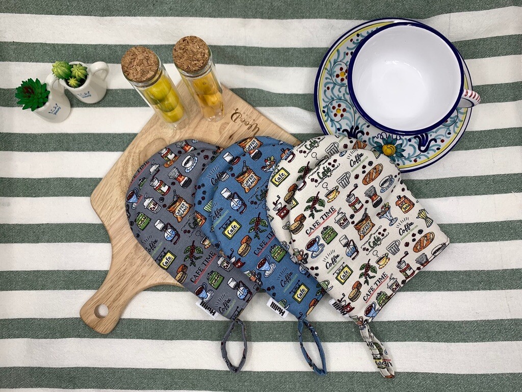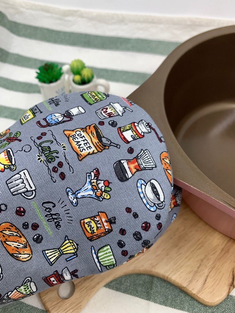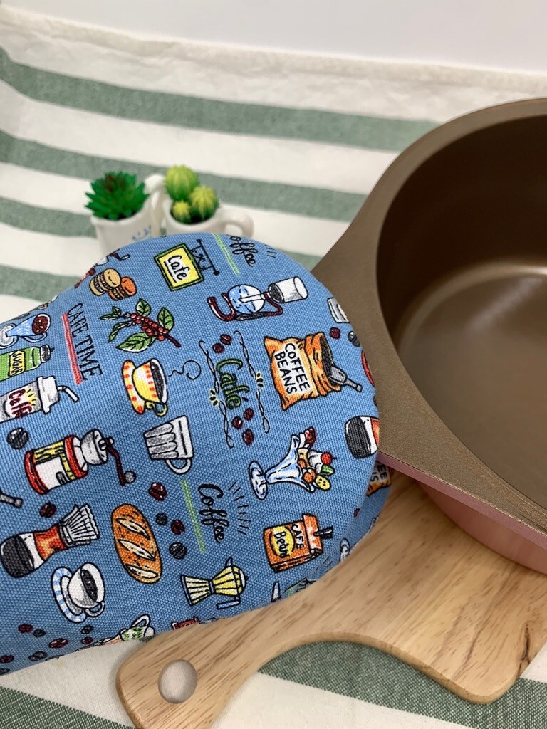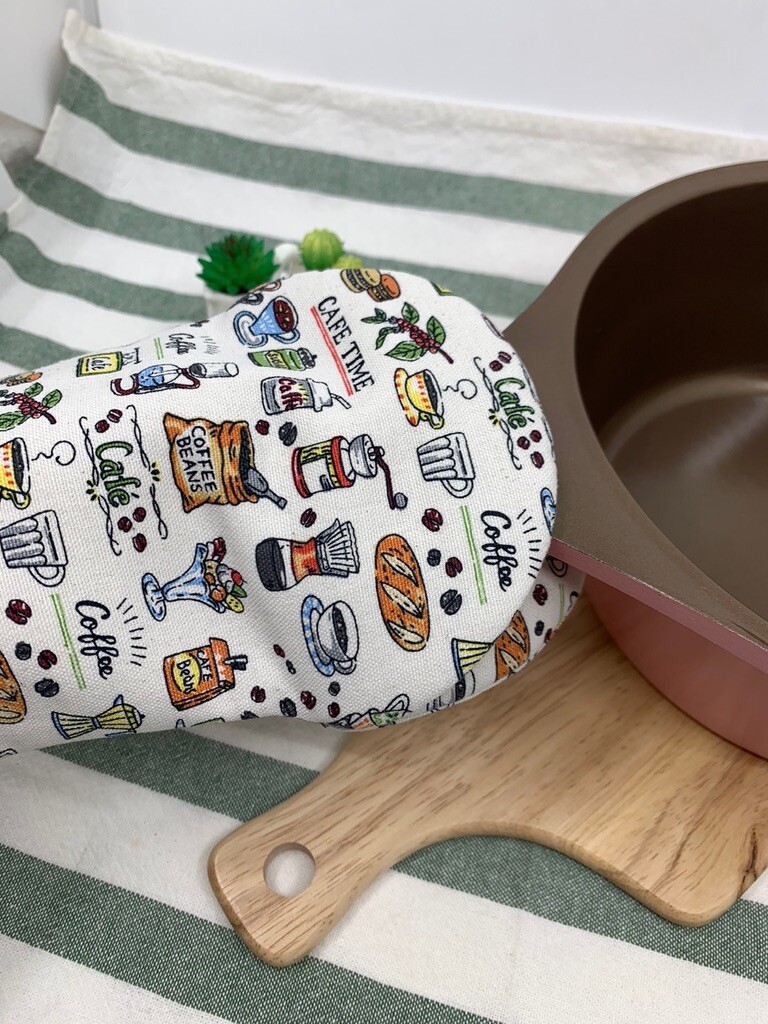 아기자기한 카페 컨셉 디자인의 패브릭으로 만든 주방장갑입니다.